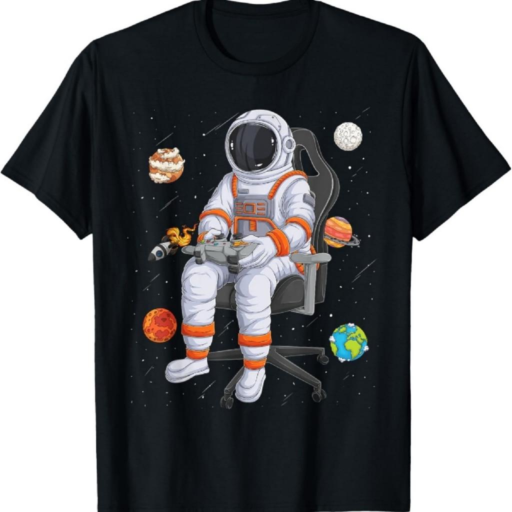 Astronaut Gamer Outer Space Men kids Gaming System Planets T-Shirt