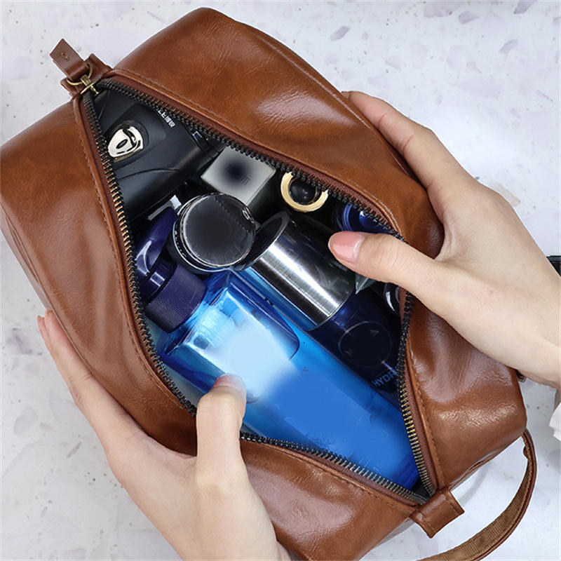 1PC Fashionable PU Leather Toiletry Bag With Side Handle For Skin Care Makeup & Grooming Essentials Travel Organizer