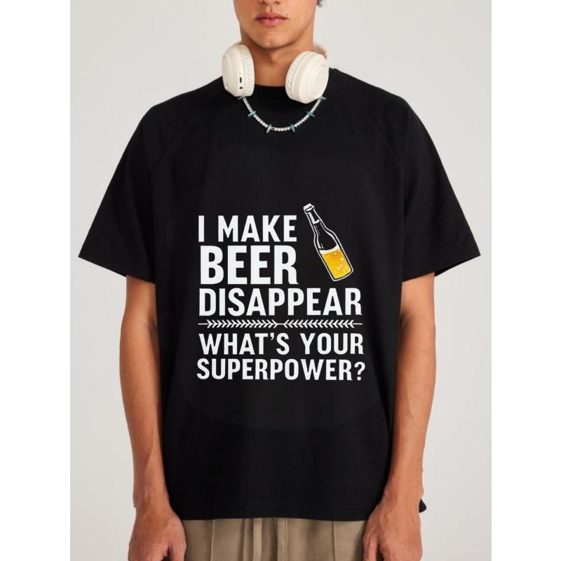 White T-Shirt with Beer Disappear Superpower Print for Casual Wear