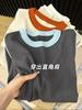 2025 spring niche contrasting color round neck inner top feminine temperament slim-fitting versatile soft waxy knitted sweater bottoming shirt