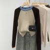 color round neck shoulder sleeve bottoming shirt women's autumn and winter slim-fitting age-reducing niche design sweater fashionable inner top