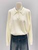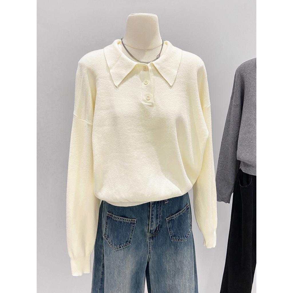 Japanese polo lapel knitted sweater women's autumn and winter casual simple inner long-sleeved front shoulder versatile bottoming shirt top