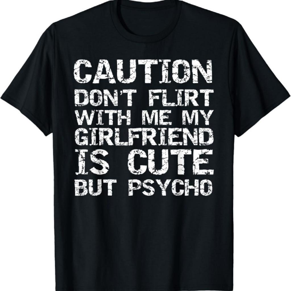 Caution Don't Flirt with Me My Girlfriend is Cute but Psycho T-Shirt