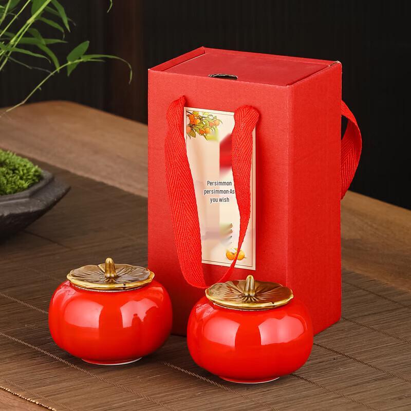 Ceramic Persimmon Tea Caddy Gift Box
