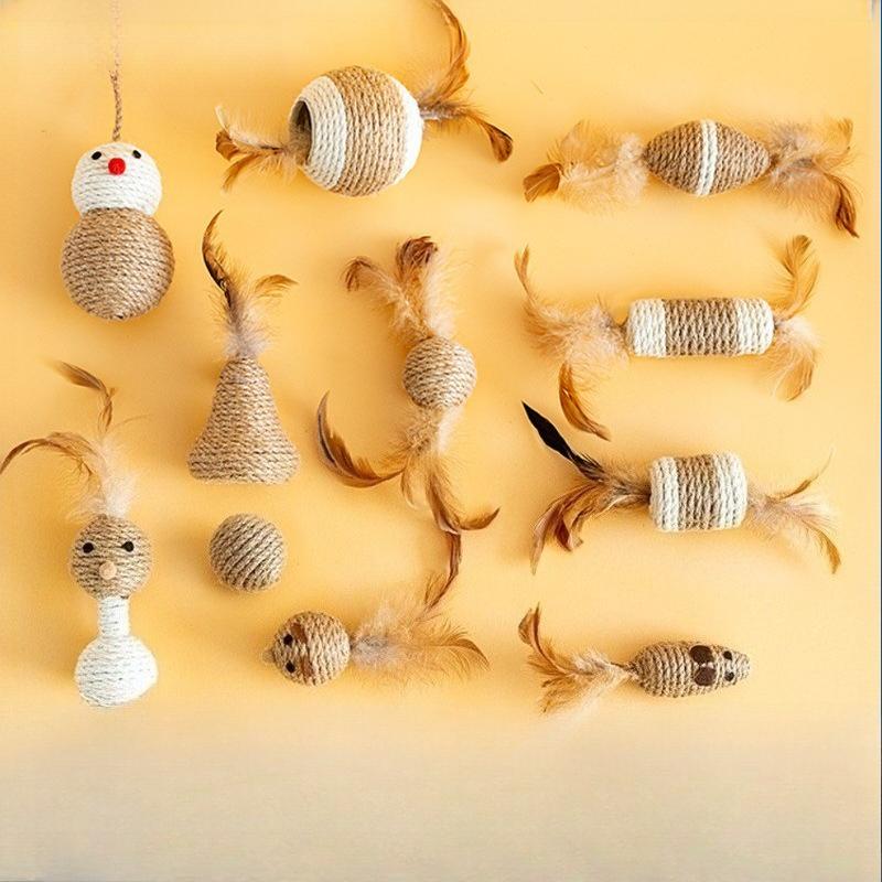 Sword Hemp Ball Feather Sounding Cat Toy, Cat Self-hi Boredom Relief Artifact, Claw Grinding and Scratch-resistant Pet Products