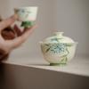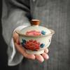Ceramic Handmade Kung Fu Zen Gaiwan, Creative Hand-painted Chrysanthemum Tea Set, Office Tea Bowl with Saucer, Drinkware