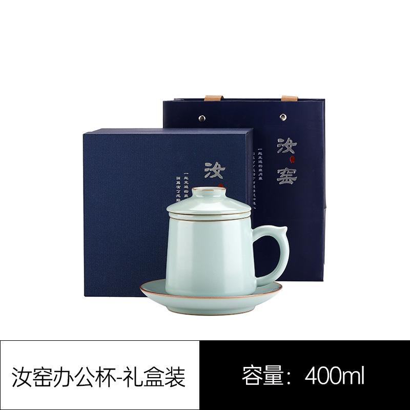 Chinese Style Ru Kiln Office Cup Ceramic Tea Water Separation Office Cup Large Capacity Mug with Lid Household Drinkware Cup