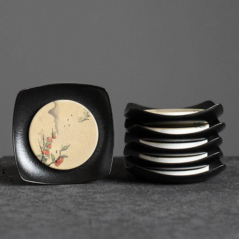 New Chinese Style Water Suction Tea Coasters Creative Pattern Coasters Antique Anti-scald Home Kung Fu Tea Ceremony Accessories