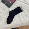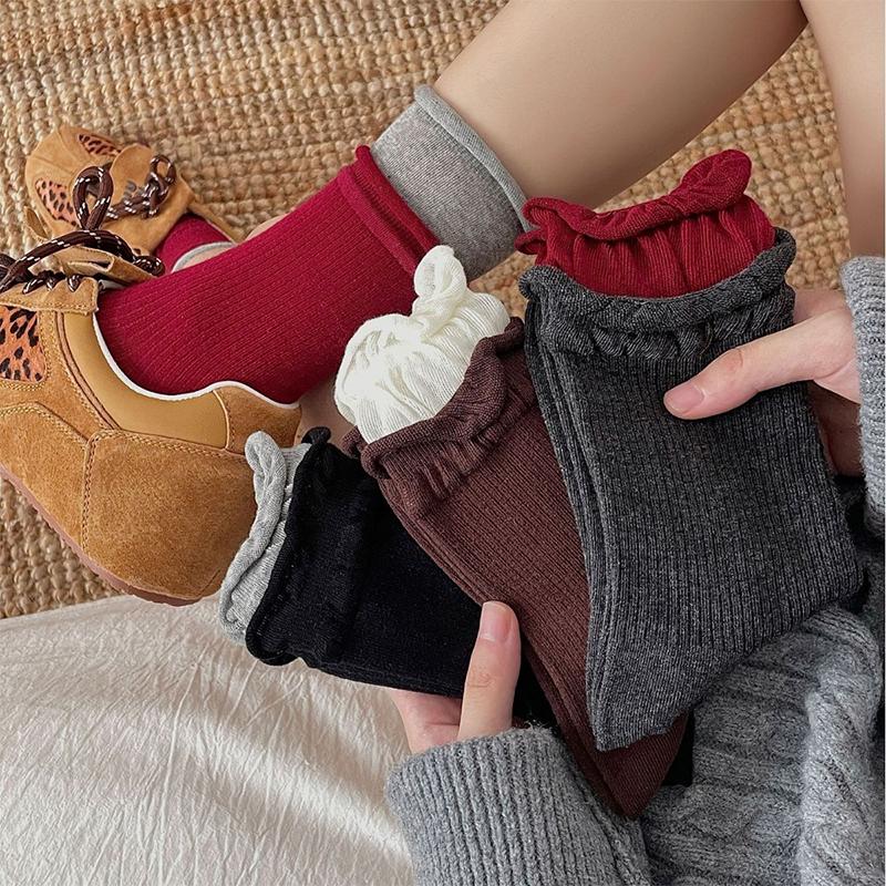 Korean INS style Angora Red black Faux Two-piece Color-matched Stockings Seamless Pure Cotton Mid-calf Socks Without Bones 1pair