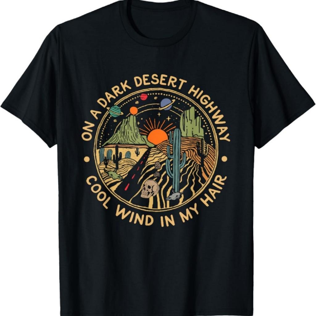 Funny On Dark Cactus Deserts Highway Cool Wind in My Hair T-Shirt
