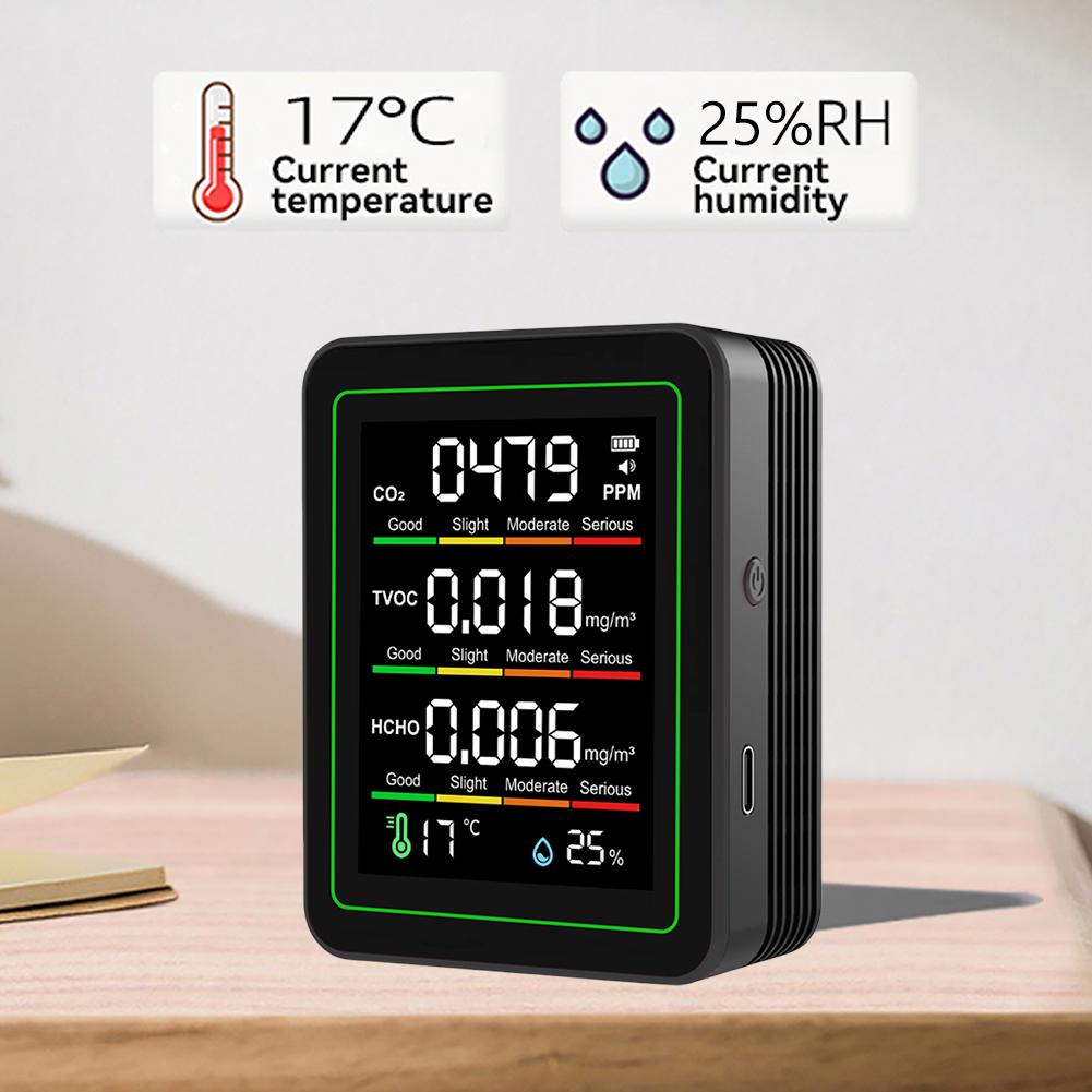 5 in 1 Indoor Air Quality Monitor CO2 TVOC HCHO Tester Temperature Humidity Detector Air Quality Tester for Home Office
