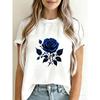 Oversized T Shirt Black Blue Rose Print Casual Wear For Women Summer Outfit Street Style Fashion Top