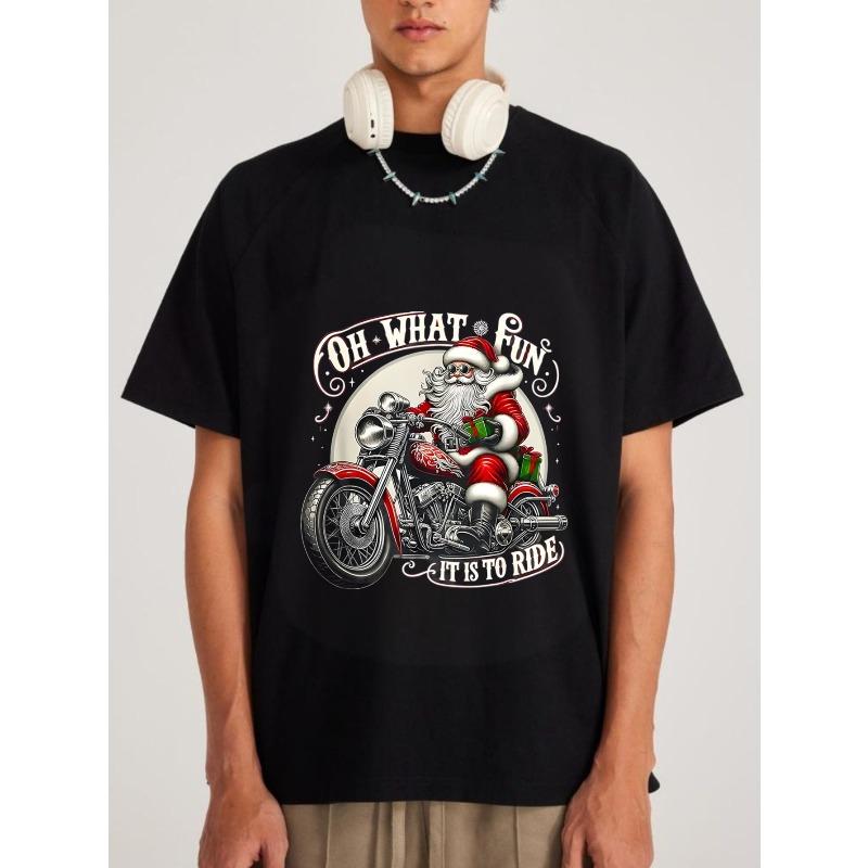 Christmas Santa Claus Motorcycle T Shirt White Santa Riding Bike Oh What Fun It Is To Ride Holiday Party Gift for Men and Women