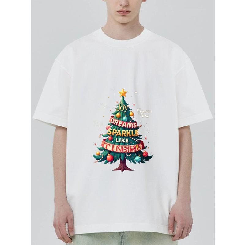 Christmas Tree T-Shirt Black Joy Dreams Sparkle Like Tinsel Holiday Print for Festive Occasions