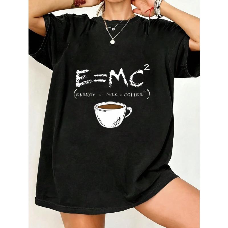 Black Oversized T Shirt With E Mc2 Coffee Formula Print And Cup Graphic For Casual Wear And Everyday Style