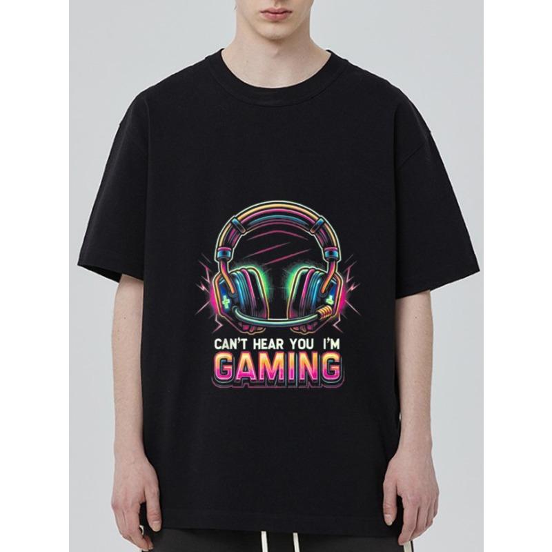 Casual T Shirt Black Gaming Headset Graphic with Text Cant Hear You Im Gaming for Gamers and Tech Enthusiasts