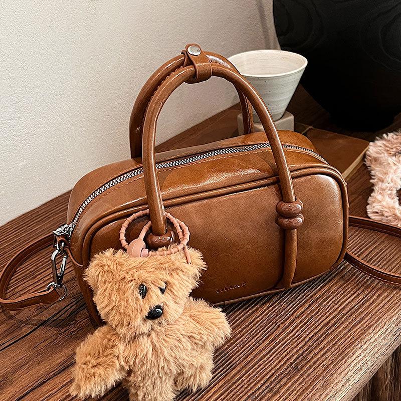 Retro niche portable bowling bag women's new simple and versatile solid color shoulder messenger bag
