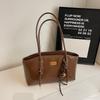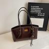 Niche premium oil wax leather vegetable basket underarm bag women's commuting solid color shoulder bag