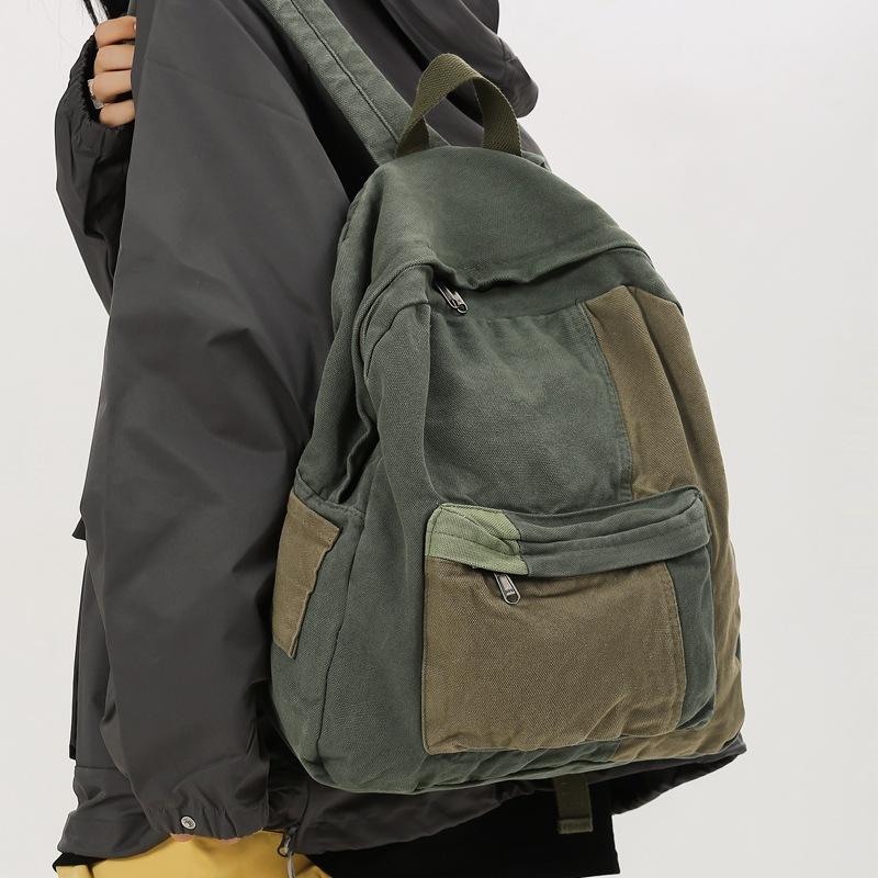 School bag women's washed canvas backpack high school college student backpack women's color matching simple Harajuku