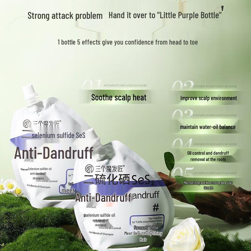 This advanced anti-dandruff shampoo from Three Magical Craftsmen features Selenium Sulfide to effectively combat dandruff, relieve scalp itch, and regulate oil production. It also promotes hair volume, leaving your scalp feeling refreshed and hair looking fuller. Suitable for various scalp types, this pack includes 5 convenient 200ml pouches.