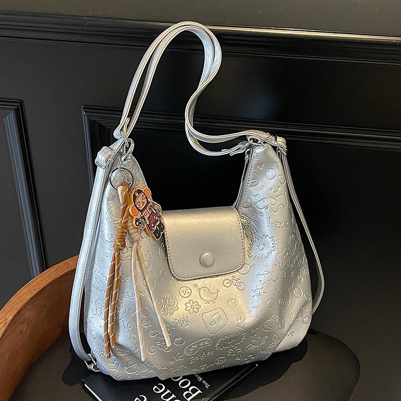 High-quality new niche cute graffiti embossed large-capacity tote bag light casual soft leather multi-back shoulder bag