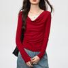 Spliced Lace Fake Two-piece Long-sleeved T-shirt Women's Slim Pleated Early Autumn Top