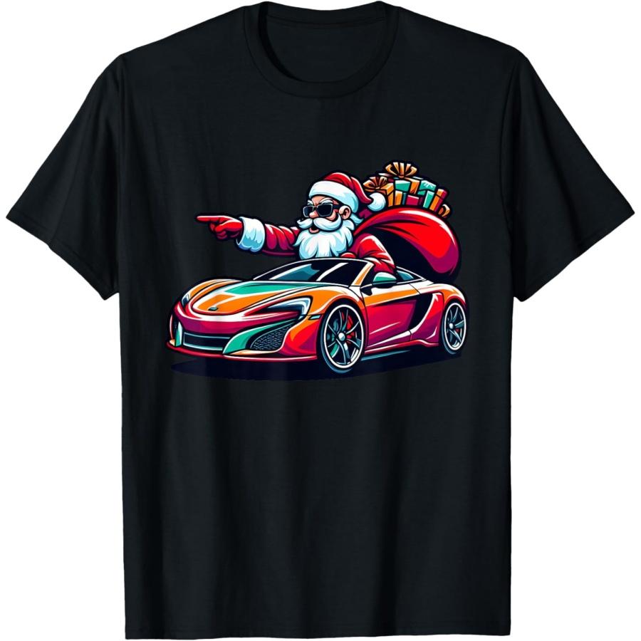 Funny Christmas Santa Claus Driving Sport Car Xmas Pajama T-Shirt