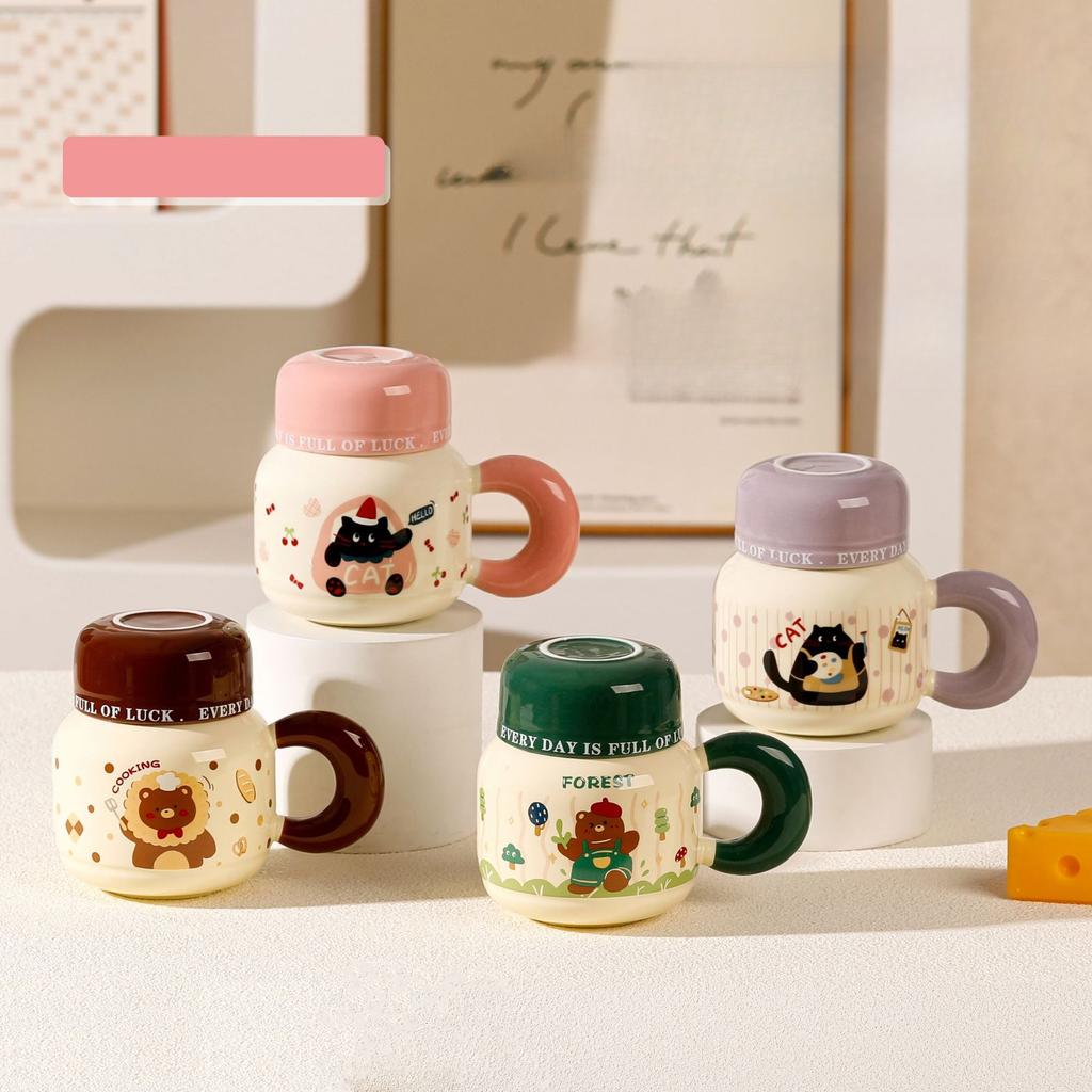 Cute Girl Mug Office Home Cartoon Ceramic Water Cup with Lid Couple Gift Souvenir High Value