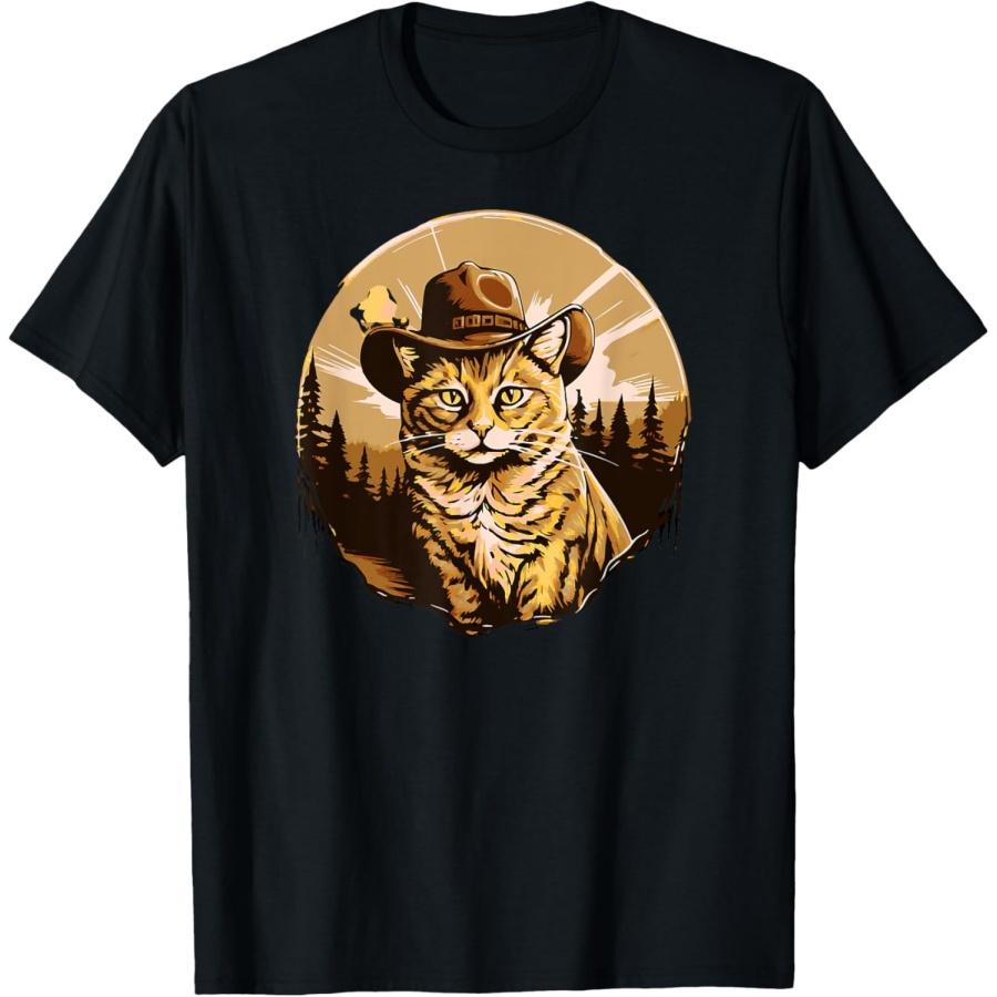 Funny Western Cat Wearing Cowboy Hat T-Shirt