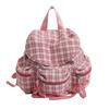 Women's bag plaid drawstring backpack summer new large-capacity student commuter backpack niche lightweight