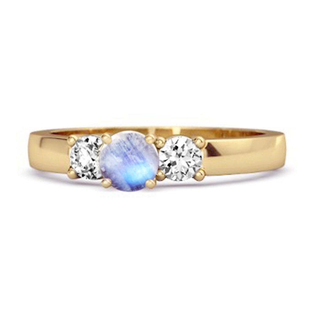 Moonstone Elegant Three Stone Ring - 925 Sterling Silver Gold Vermeil