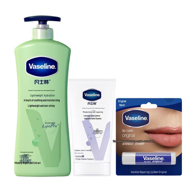 Vaseline Deep Care Aloe Body Lotion, Hand Cream & Lip Balm Set
