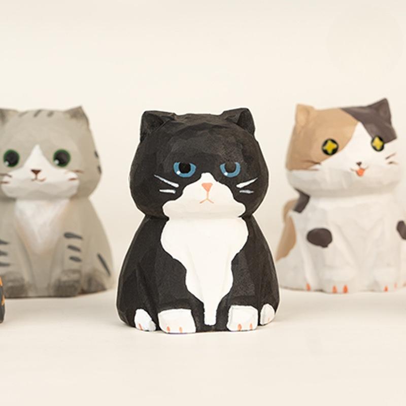 Figurină animal pisică din lemn sculptat pentru copii, ornament mic creativ de birou, decor pentru mașină, jucărie de scenă