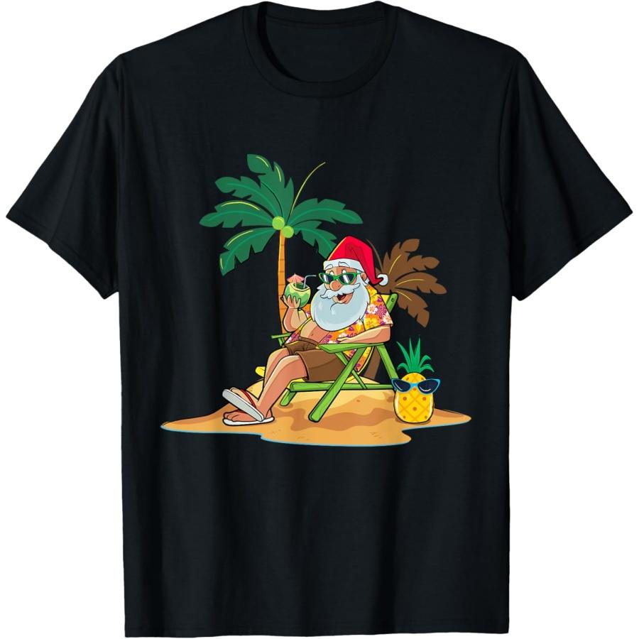 Hawaiian Christmas Santa Claus Party Aloha Holiday Beach T-Shirt for Men Women Kids