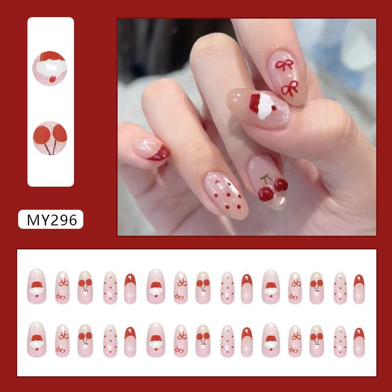 Iced cat-eye cute strawberry cake French cherry bow removable manicure 30 pieces