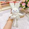 Plush Rabbit Pendant Keychain With Floral Skirt Design For Gift And Collection