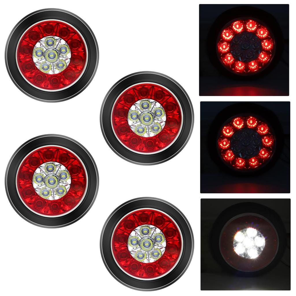 【Function】Circular red/white lights as brake lights, brake lights, tail lights, running lights, backup lights and reverse lights: The LED outer ring has dual modes (high and low beam) and can be used as brake tail lights, running lights. The LED trailer tail lights can be used as backup lights and reverse lights.