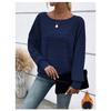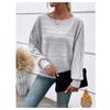 Autumn and Winter Comfortable Casual Solid Color Long Sleeved Round Neck Patchwork Pullover Top T-shirt for Women