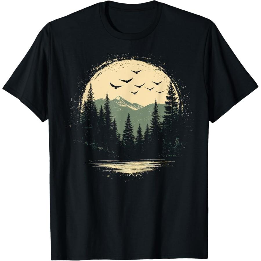 Retro Wilderness Bear Trees Reflection Outdoor Forest T-Shirt(3)
