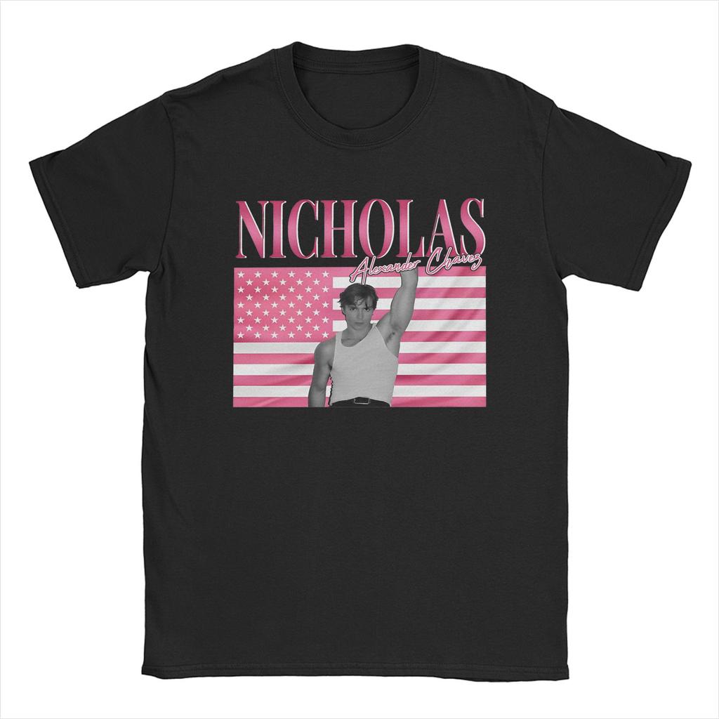Men's T-Shirt Nicholas Alexander Chavez Actor Vintage 100% Cotton Tee Shirt Short Sleeve Pink USA Flag T Shirt O Neck merch New