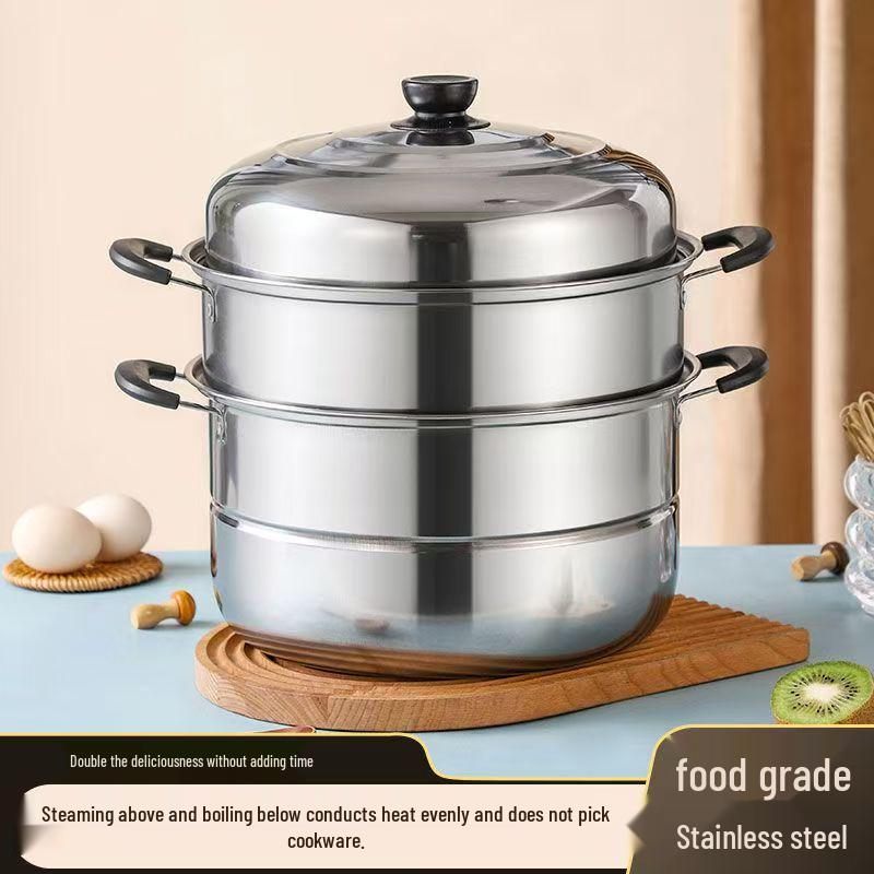 Stainless Steel Double-Layer Steamer Pot for Induction & Gas Cookers, Large Size, Ideal for Steaming Buns and Fish
