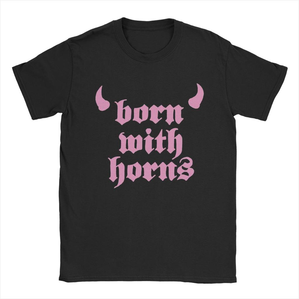 Machine Gun Kelly MGK Born With Horns T-Shirts Men Cool Cotton Tees Round Neck Short Sleeve T Shirts Gift Idea Clothing