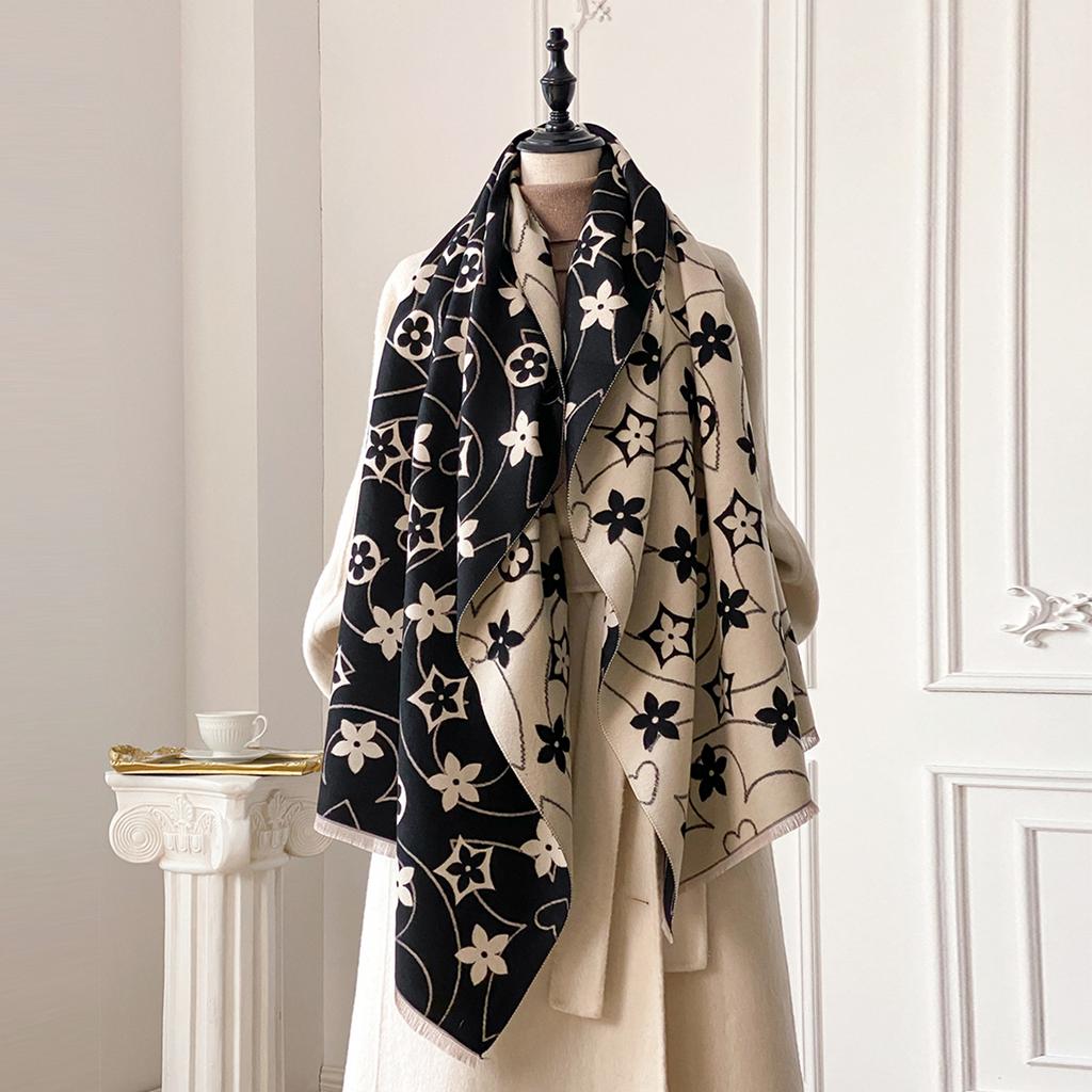 Luxury Women Two-Sided Print Scarf Soft Warm Pashmina Flower Shawl Winter Outdoor Coldproof Windproof Blanket Scarf