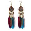 1 Pair Beads Multicolor Retro Drop Earrings Bohemian Long Feather Hook Earrings Party Jewelry