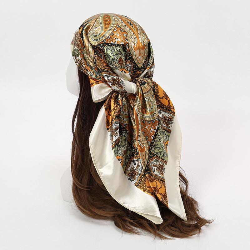 90*90Cm Women'S Hair Scarf Bonito Fashion Designer Paisley Foulard Soft Square Square Stem Silk Scarves