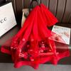 Elegant Floral Embroidered Silk Scarf For Women, Stylish Sunscreen Beach Shawl With Beaded Trim, Bohemian Windproof Must-Have