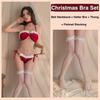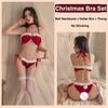 Christmas Outfit Santa Sexy Lingerie Women Babydoll Exotic Set Lace Up Plush Bra Pantie Halter Feather Ring Bell Neckband Bikini