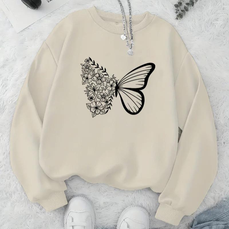 Women's Retro Printed Crew Neck Sweatshirt, Vintage Style & Oversize