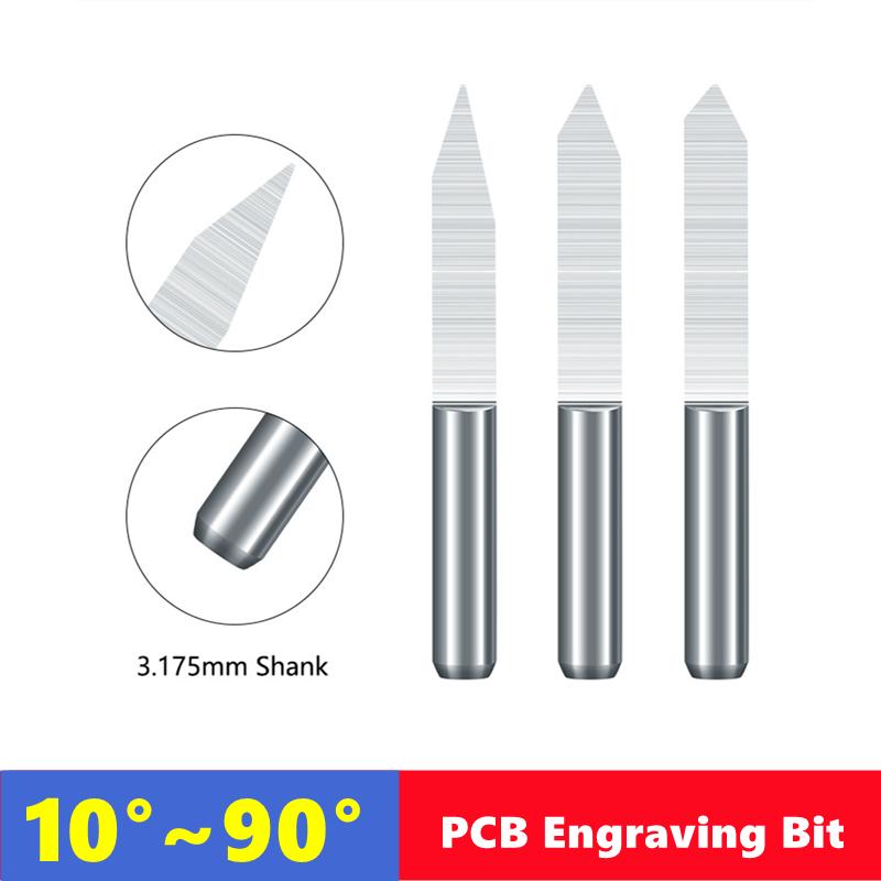 10pcs 10 °~90 ° V-shaped milling cutter 3.175mm (1/8 inch) hard alloy PCB engraving drill bit CNC engraving tool