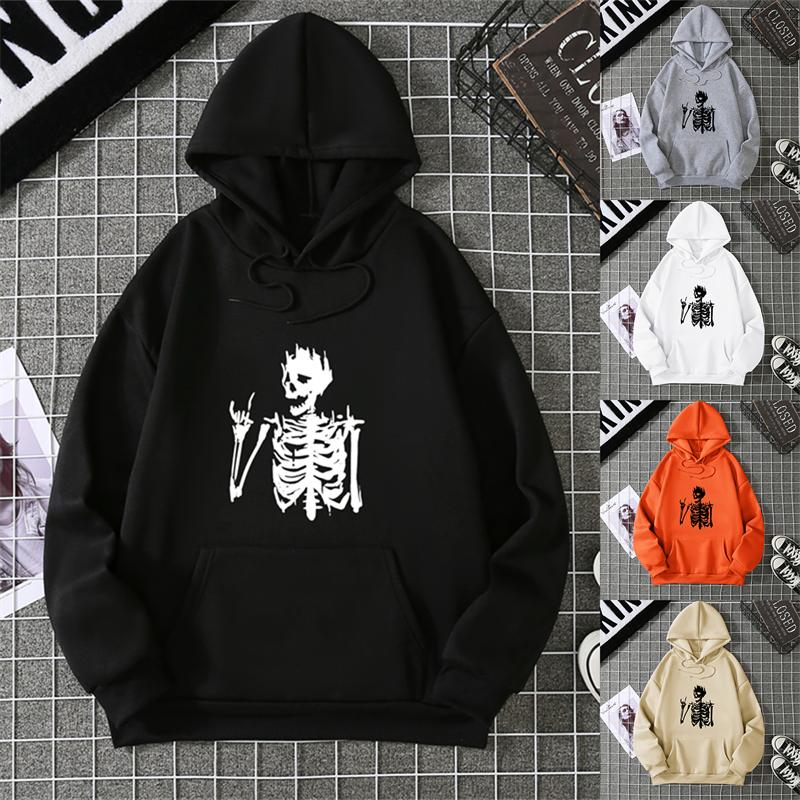 Retro Skull Print Hoodie Women's Fashion Hip Hop Loose Sweatshirt Cat Casual Sweatshirt Pocket Harajuku Streetwear Graphic Y2K